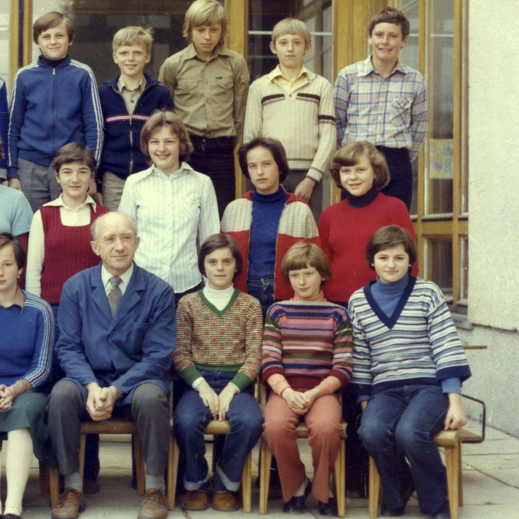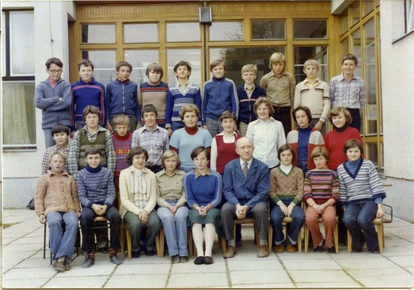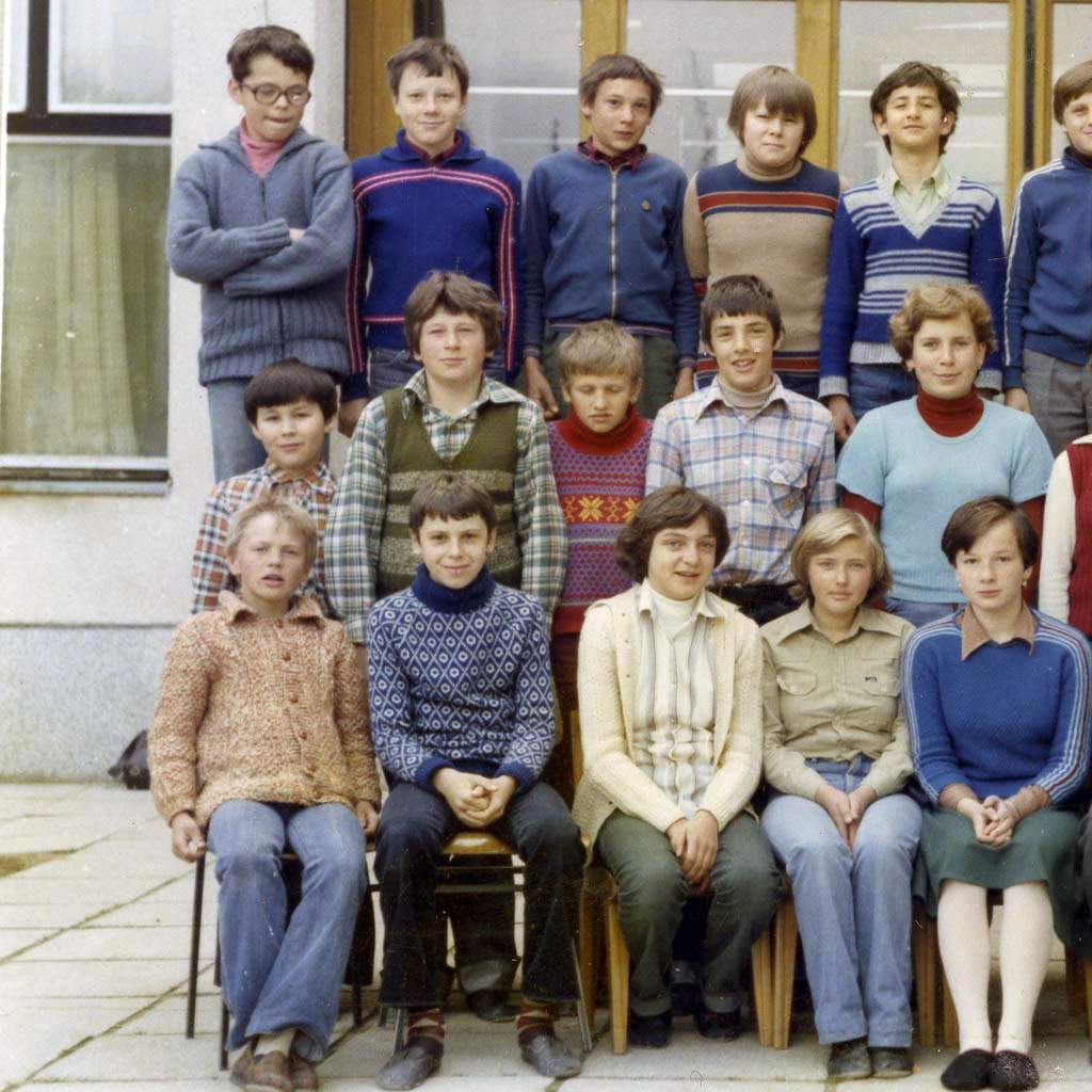 Razrednik Konrad Knez in 6. d razred v Cerknici v šolskem letu 1977/78.