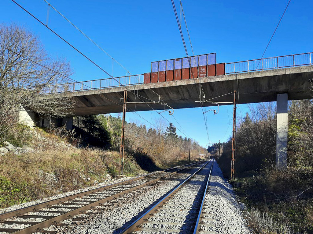 Podjetje GRADIS je bilo poleg drugih premostitvenih objektov na trasi avtoceste zadolženo za gradnjo armiranobetonskega cestnega nadvoza preko proge in avtoceste.