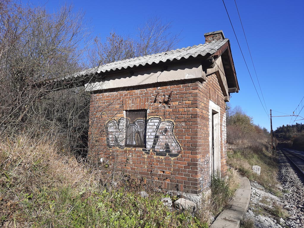 Uta čuvajnice 733 in cestni prehod preko proge, ki ga je koristila gradbena mehanizacija med gradnjo avtoceste. Kilometrski kamen s št. 85 označuje kilometre do Trsta, postavili pa so ga Italijani po določitvi Rapalske meje leta 1920. Uta danes še vedno stoji, le nivojski prehod je bil po zaključeni gradnji avtoceste ukinjen in nadomeščen z nadvozom.