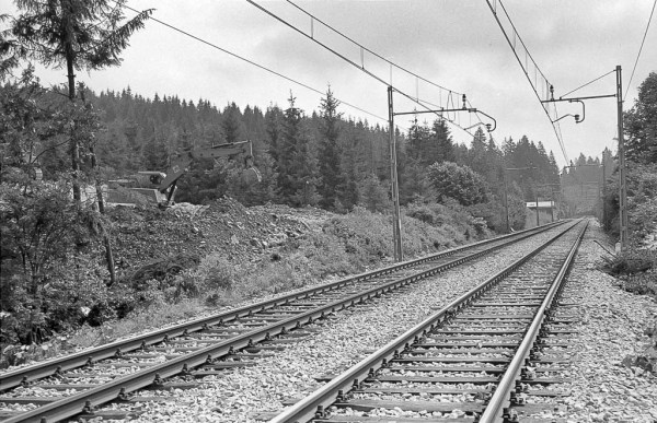 Pogled z istega mesta več kot 52 let kasneje (november 2023). V daljavi se še vedno vidi uta čuvajnice 733, ki pa je zaradi zaraščenosti progovnega pasu težje prepoznavna.