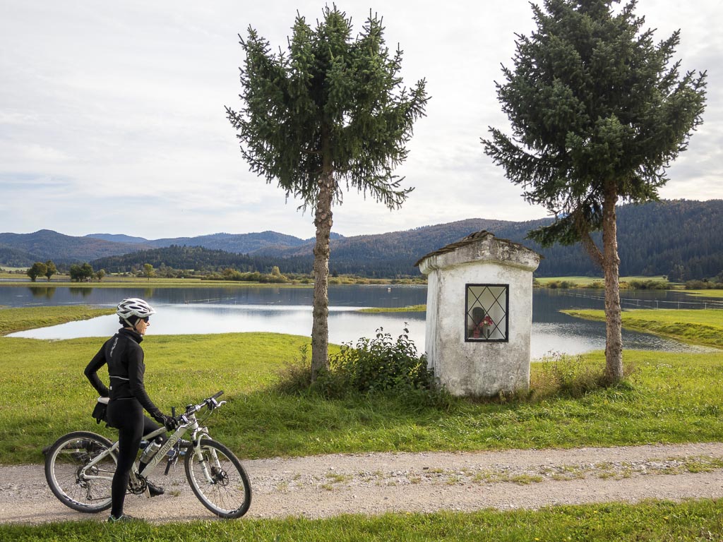 Ta slika je nastala 9. 10. 2020, avtor je Miloš Toni, ujela pa je izjemen pogled na poplavljeno polje pod Podcerkvijo. V ozadju je čisto levo videti delček Kuclja, nato hribe proti Babni Polici, izstopa Šmaraški hrib, zadaj leži predgorje Snežnika, desno pa južni del Javorja … V ospredju stoji Jakopcova kapelica, za njo so zalite Jakopcove jame, iz katerih so nekoč kopali glino in jo v opekarni, ki je stala kakih 250 do 300 m bolj v levo, predelali v opeke. Dobro sta vidna ravna robova dveh, kakih 2-3 m globokih pravokotnih jam, iz katerih so davno odstranili ilovico. Kakšna je bila, od kod je prišla tja in koliko je je še? In kaj so storili opekarji, kadar je voda zalila jame, kar je bilo vsaj enkrat, če ne dvakrat letno? So imeli ilovice dovolj nakopane na zalogo?