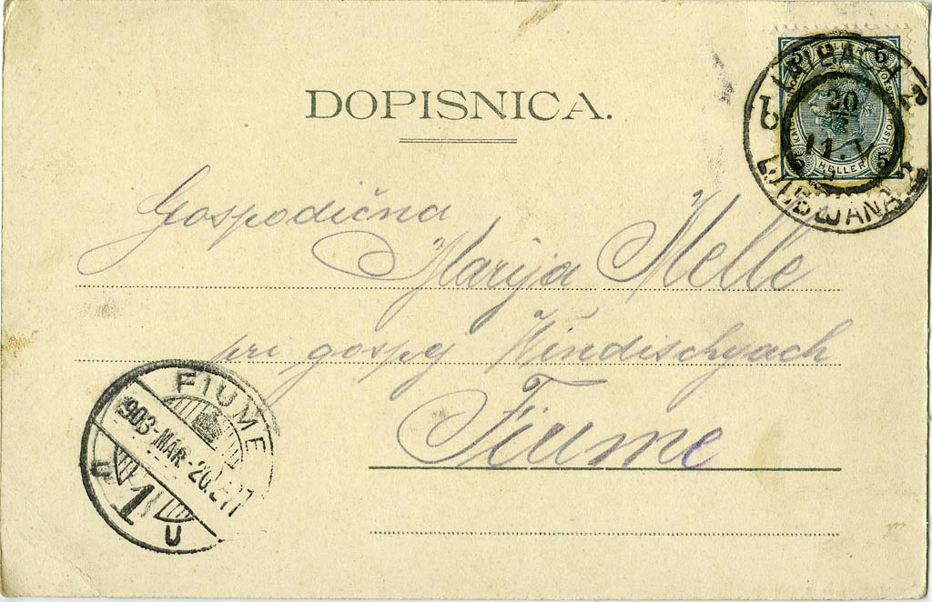 Na razglednici iz leta 1903 je stavba Slovenske filharmonije, skrajšano Filharmonija. Kot že ime pove, je to koncertna stavba. Stoji na Kongresnem trgu, kar je prav tako razvidno z razglednice. V njej sta dve dvorani, velika in mala. Ob stoletnici Filharmonije leta 2008 so ju preimenovali Veliko v Dvorano Marjana Kozine in Malo v Dvorano Slavka Osterca. Istega leta je Vlada zgradbo razglasila za kulturni spomenik državnega pomena.