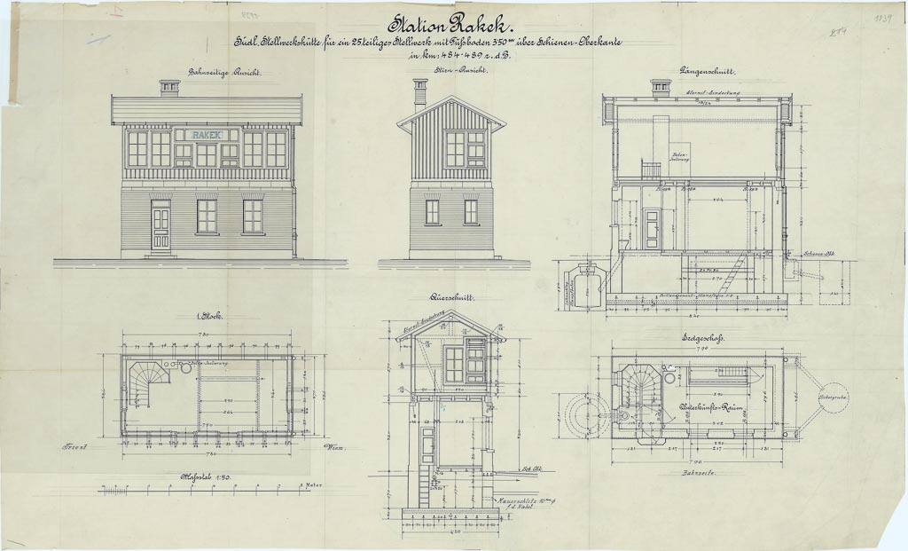 Detajl z razglednice Rakeka, ki jo je posnel Vekoslav Kramarič v obdobju med obema svetovnima vojnama. Na sredini se nahaja štelverk III, kjer je pritlični del zidan, nadstropni pa lesen. Nadstropni del je imel veliko zastekljenih oken, da je kretnik lahko spremljal dogajanje med vožnjami vlakov v obe smeri.
