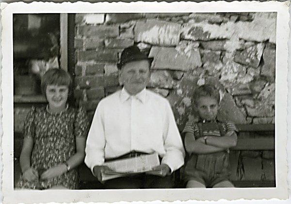 Slika je bila posneta sredi 70-tih v Topolu pred s kamnom zidano Mihovčkovo hišo. Na leseni klopi sedijo Romana Kranjec, Ivan Korenčan in Robert Margon.