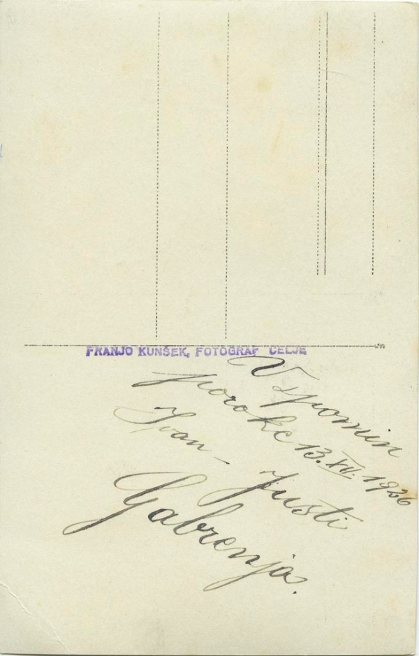 Martin Gabrenja, brat mojega starega očeta Matije Gabrenja st. (med letoma 1907–1910 lastnika restavracije v beli hiši z mostom, leta 1911 je gostilno predal sinu in je obratovala do leta 1925) je kupil (oziroma zamenjal) od Andreja Matičiča lastnino/posest št. 104, na/pri kateri je parcela 49 in hiša št. 3, s parcelama 922 in 920. V mali hiši št. 3, sredi širokega vrta št. 920, živi osamljen Martin Gabrenja do svoje smrti leta 1931. Njegov najmlajši sin Janez Gabrenja se je poročil verjetno v župniji v Celju (na fotografiji zadaj piše: Franjo Kunšek Fotograf Celje), 13. decembra 1926 z Justino Pavšer.