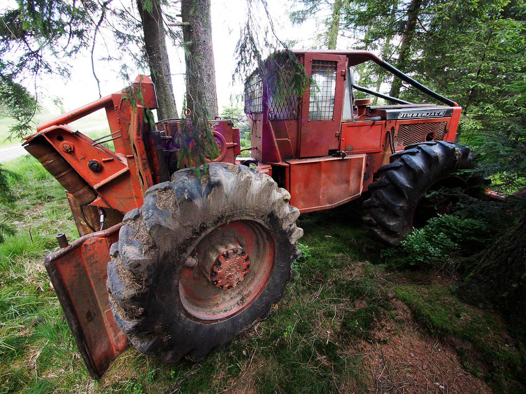 Timberjack – Razvoj pa se ni ustavil. Tako je v začetku sedemdesetih prišel nov kanadski zgibni traktor Timberjack. Prisostvoval sem pri njegovi promociji v Rakovem Škocjanu, ko je privlekel kar nekaj celih smrek. Prikaz je bil katastrofalen. Vlaka je bila prilagojena traktorju IMT 558 in vleki razrezane hlodovine. Timberjack pa je bil širši in močnejši, zaradi velike dolžine hlodovine je dobesedno kosil mlade smreke in drugo drevje. Epilog je bil, da je potrebno vsakemu stroju pripraviti ustrezne razmere za delo.