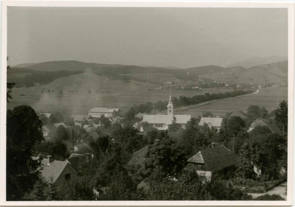 Na desni so Slivice in v ozadju Unec. Sredi slike je cerkev in levo od nje Sokolski dom. Poleg cerkve je farovž. V njem so bila stanovanja. V kleti je živel cerkovnik Slabe, na podstrešju policaj Nosan. V pritličju so bili na eni strani Urbančičevi: mama in hči Nuška, poročena Steržaj. Kasneje so bili tam Lešnjakovi. Župnik je stanoval na Uncu. Na drugi strani je bil Krajevni ljudski odbor. Zaposlena sta bila Ivana Mekina in Bajc. V desnem spodnjem kotu je križišče dveh poti. Z gospodom Mekino sva prišla za zaključka, da je to najbrž stičišče Gasilske ulice in Kamnite poti. Če to drži, je v levem spodnjem kotu streha hiše moje stare mame.