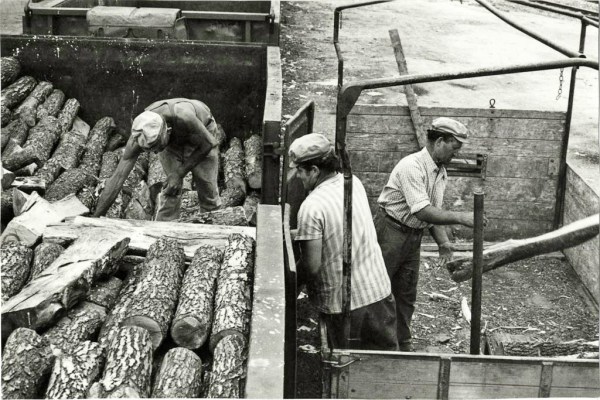Polovica tovornjaka je že naložena, in to tako, da se je povesil na levo stran. Izdelali so še dodatne stranice, da bi se ja dalo prepeljati čim več lesa. Policija in predvsem voznik danes verjetno ne bi bila preveč navdušena, če bi stehtali ta tovornjak. Zagotovo bi pokazal prekomerno obremenitev, še posebno, če les ni bil suh. Fotografija je bila posneta leta 1977.