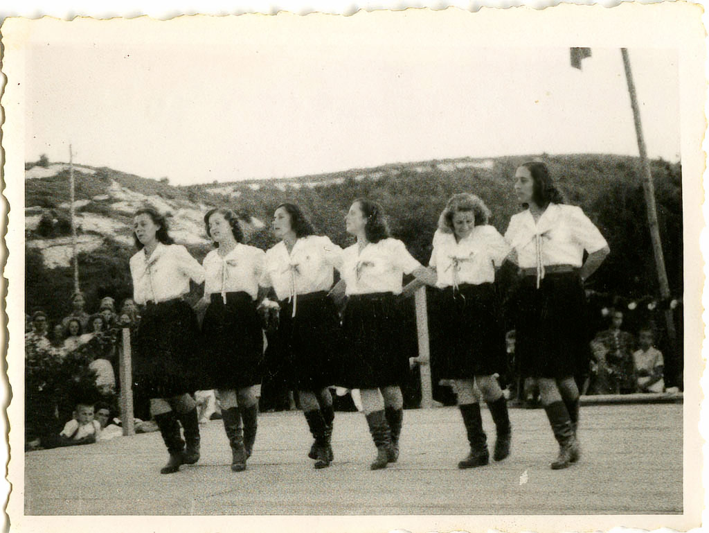 Med 27. julijem in 4. avgustom 1946 je potekal kulturni festival za okraj Notranjska. Zaključna prireditev je bila na Rakeku. Tu so tudi nastale pričujoče tri fotografije. Vsa dekleta imajo bele bluze z velikim ovratnikom in mašno, plisirano krilo in so obuta v škornje, ki jih tisti čas ni bilo na pretek.