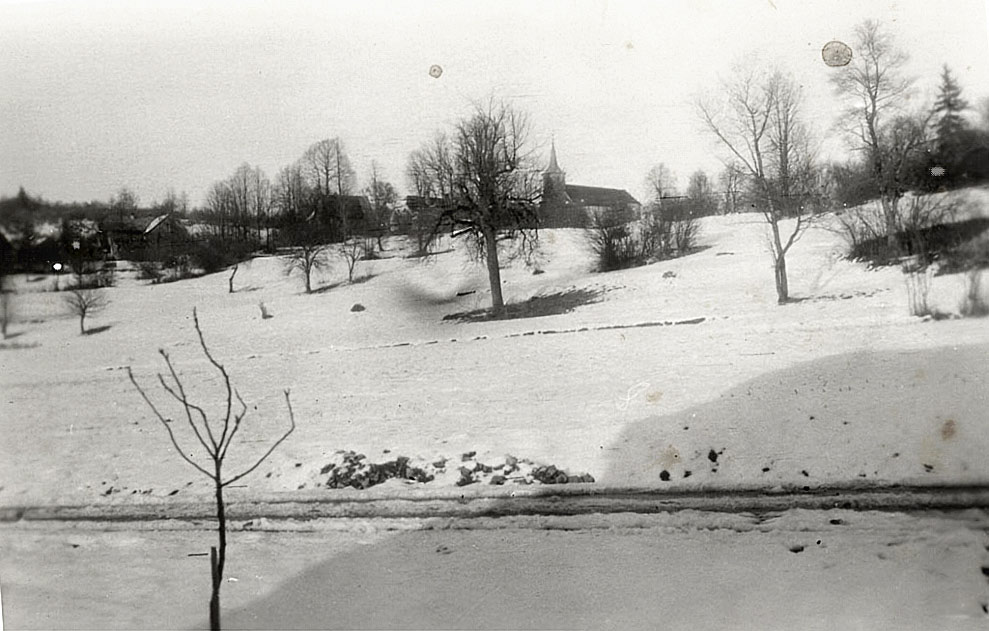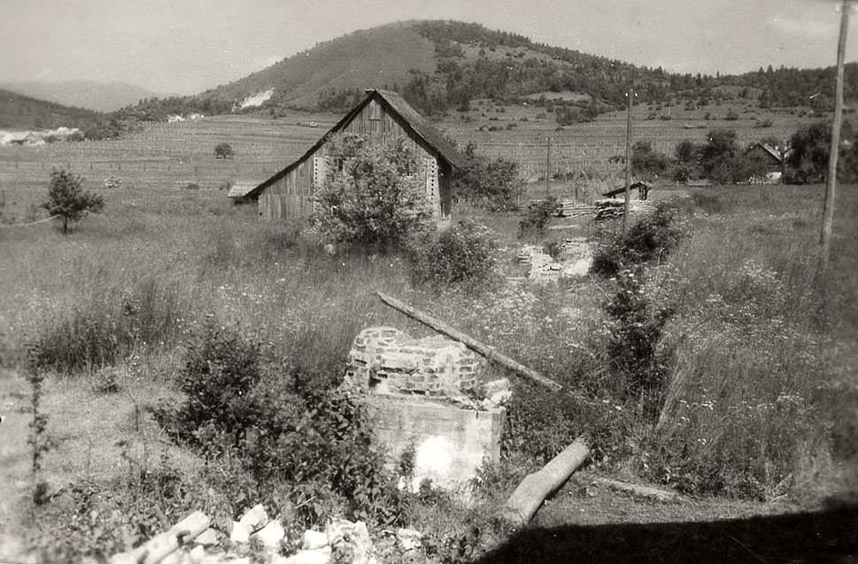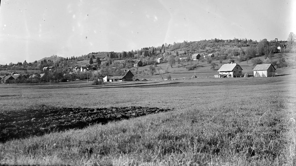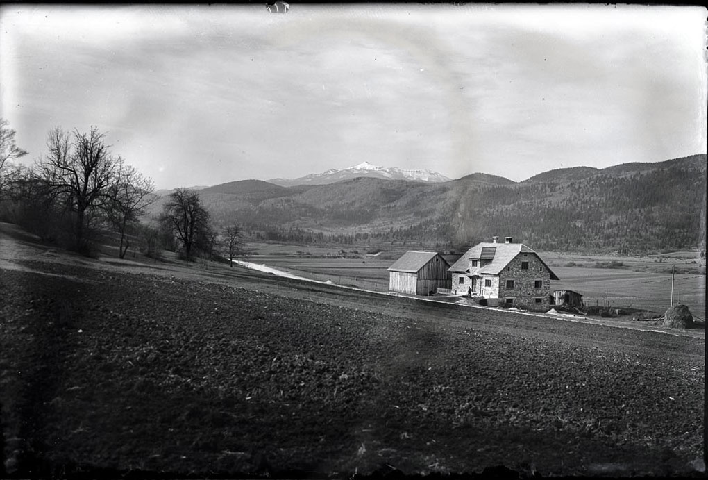 Tu se je fotograf postavil na vzhodno stran polja, na pobočje z njivami. Gre za posnetek iznad Devčkov proti Kračcam na (južno deloma že nadleško) polje, Snežnik in Javornike. Idilična, močna slika. Kako dobro je moralo biti pri srcu Francu Trudnu ob tem pogledu: po neskončnem vojnem trpljenju, moriji in uničenju končno nov, varen dom v prekrasni naravi …