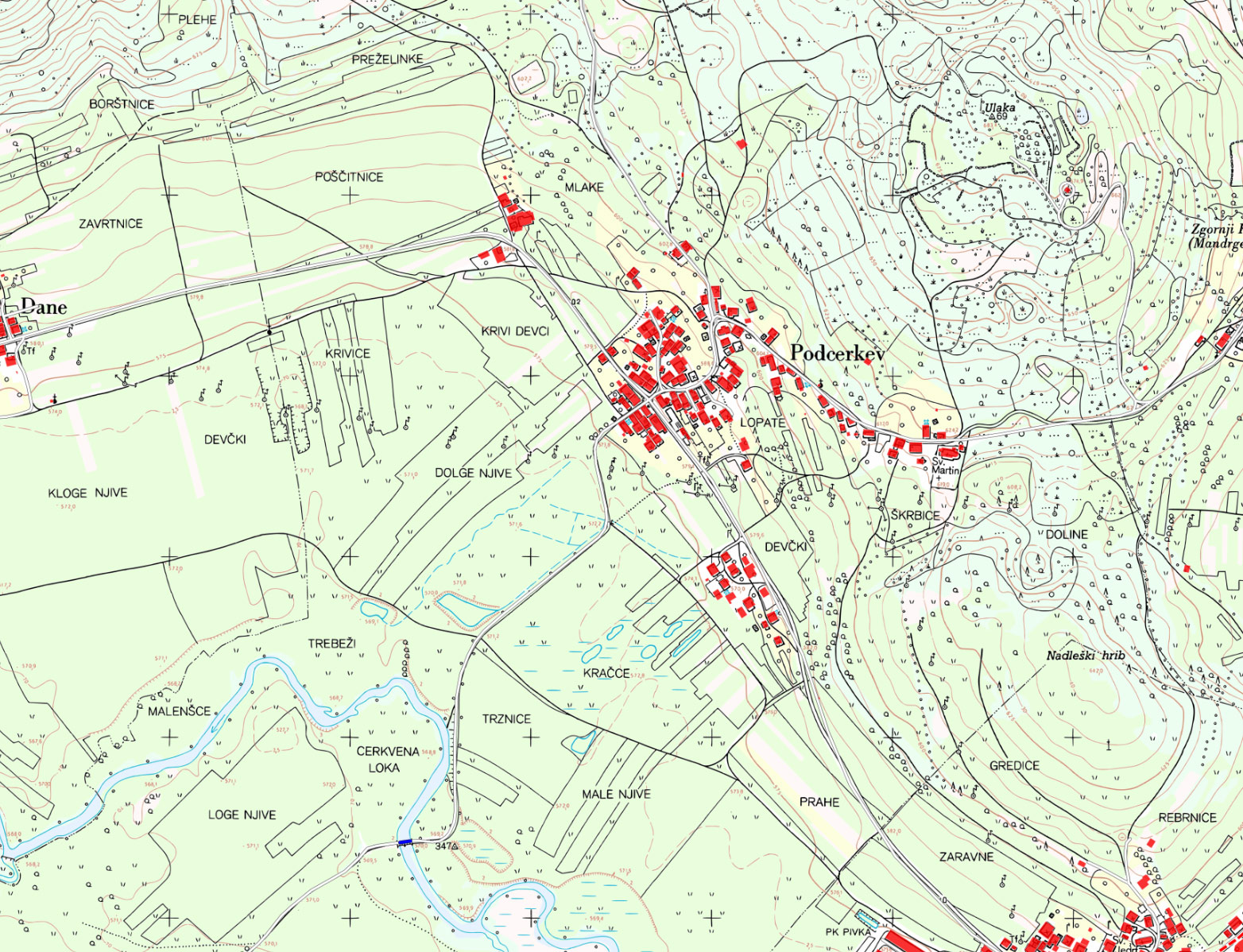 1954/58 Podcerkev – Približen popis ledinskih in domačijskih imen