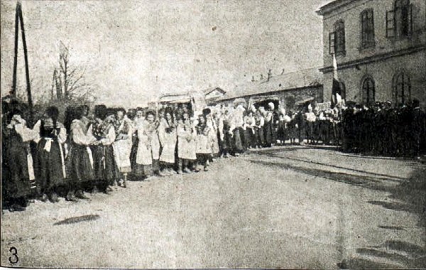 Kmalu po 10. uri je zavozil na logaški kolodvor bogato ozaljšani posebni vlak. Na kolodvoru je bila zbrana številna množica vsega naroda: šolski malčki, ki so vihteli svoje narodne zastavice, krepka in zavedna dekleta v narodnih nošah, ognjegasci, Orel in Sokol ter druga kulturna društva.