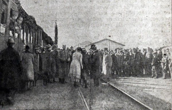 Med viharnimi pozdravi domačinov, ki so se zbrali na kolodvoru, se je pričel pomikati vlak z logaške postaje proti Verdu.