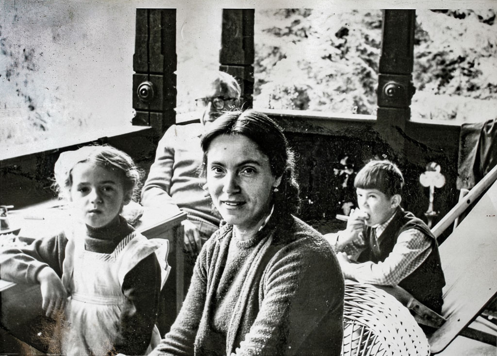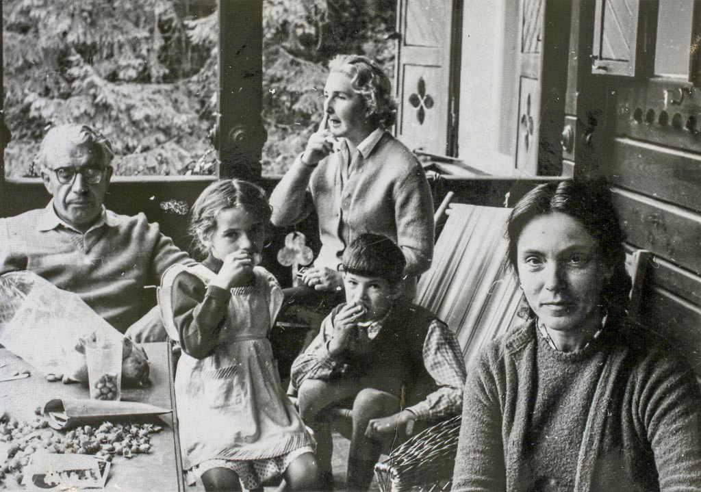 Naša družina na balkonu Doma književnikov na Bledu okrog 1960. Fotografiral je naš prijatelj, zdravnik in slikar Anton Dolenc (1930-2013).