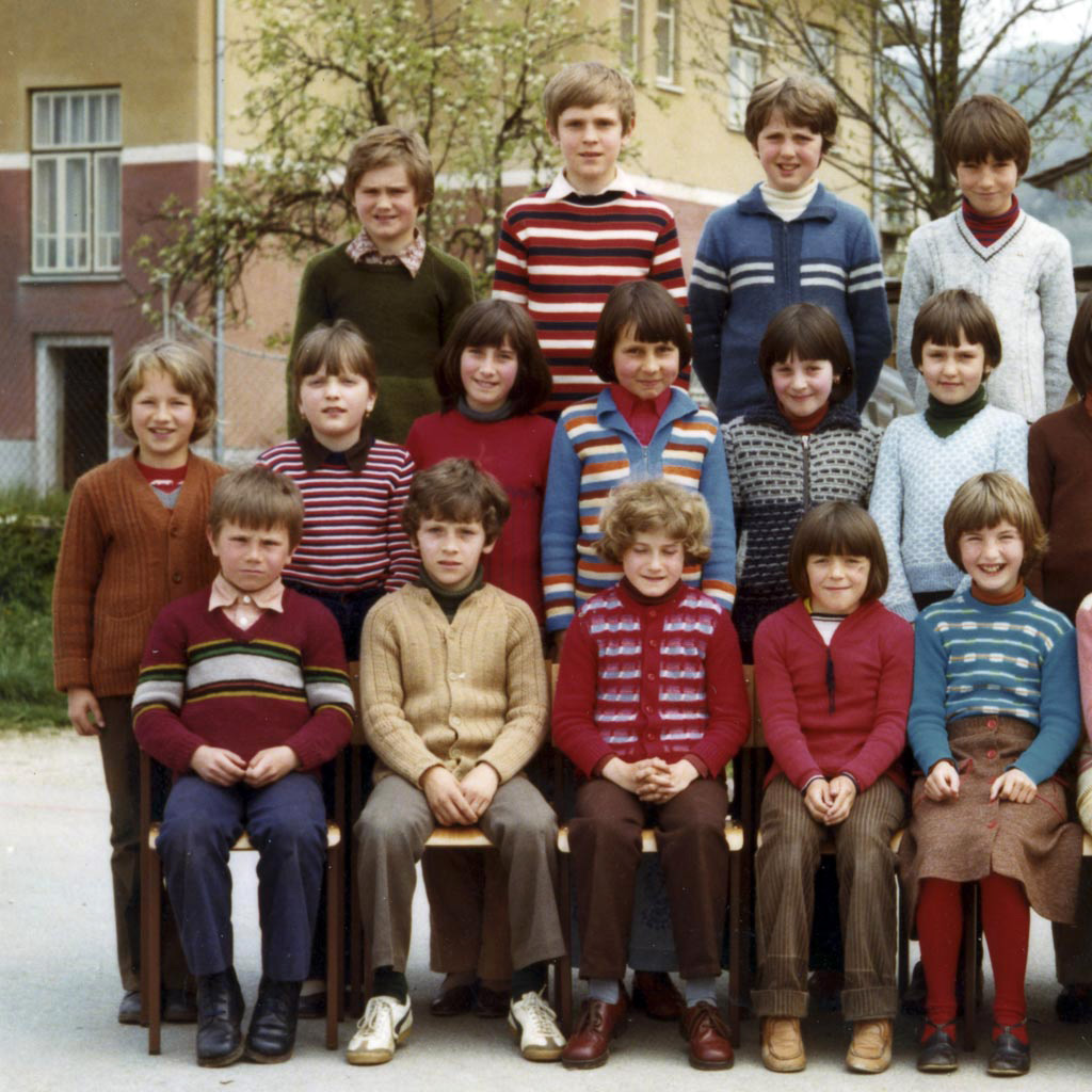Učiteljica Rozalija Škrlj in njen 3. razred v šolskem letu 1979/80 v osnovni šoli Begunje. V razredu je bilo kar šest učencev iz Bezuljaka.