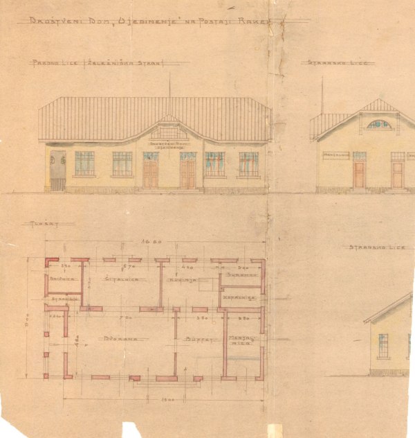 Na sliki je del načrta za Društveni dom »Ujedinenje« na Rakeku. Napravljen je bil leta 1922. Do zidave ni prišlo. Je arhitekt napravil napako, ko je napisal »ujedinenje«? Pravilno je ujedinjenje, po slovensko zedinjenje ali še bolje združitev. Kje naj bi dom stal, ni bilo mogoče ugotoviti. Sklepam, da nekje v okolici rakovške železniške postaje.