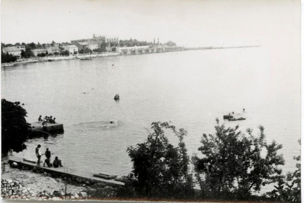 Sliko je Ivan posnel z okna stavbe na začetku Selc, kjer so fantje imeli sobo. Kopali so se na pomolu izven glavnega kopališča, ki ga je videti na drugi strani zaliva. Obala je tudi tu urejena in le malo zasedena, morje čisto in sveže, sonce pa zmerno …