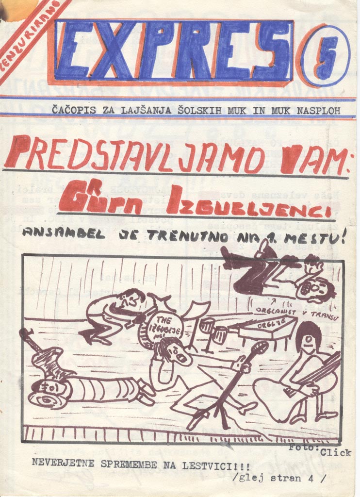 Na naslovnici pete številke je namišljen ansambel Izgubljenci, ki se zgleduje po nastopih angleškega benda The Who, kjer so razbijanje instrumentov šteli v energijsko pozitiven del svoje predstave. List je namesto fotografij objavljal okorne, s flomastrom narejene risbe, Foto Click sem bil jaz.