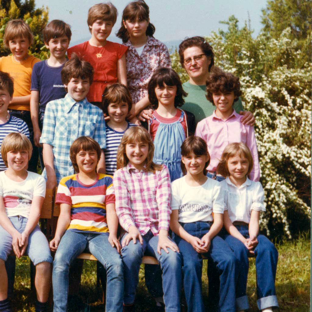 Za slikanje je fotograf Bajček to leto izbral drugačen ambient kot prejšnja leta. Četrtošolce je postavil na vrt ob šoli, kjer je sedaj otroško igrišče.