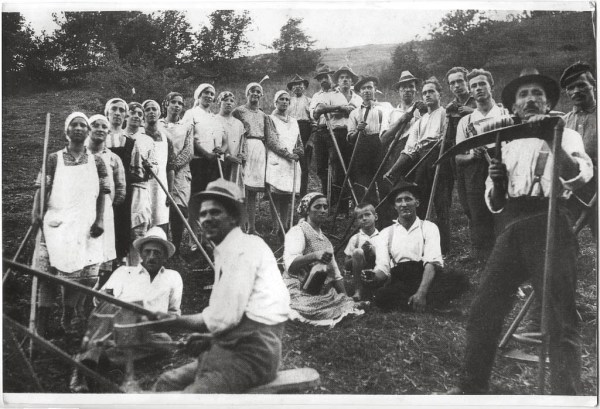 Kar veliko ljudi je bilo potrebnih v košnji, da so pripravili krmo za celo leto, saj so v tistih časih imeli kmetje veliko živine v hlevih. Za to delo je bilo takrat edino orodje kosa, grablje in pa voz. Kdo je naredil ta posnetek, lahko samo ugibamo, kar nekaj teh fantov in deklet smo pa le prepoznali: