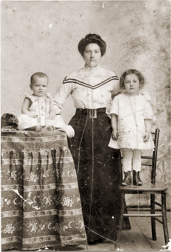 Sliko iz okoli leta 1912 neznanega avtorja hranijo pri Mohorjevih in na njej je pri fotografu posneta postavna mlada ženska z dvema otrokoma. Deklica stoji na stolu, mlajši deček v krilcu pa sedi na pregrnjeni mizi. Glede na lažja oblačila otrok je bila slika najbrž posneta v toplem letnem času. V ozadju prostora s podom iz širokih desk je mogoče slutiti poslikano platno.