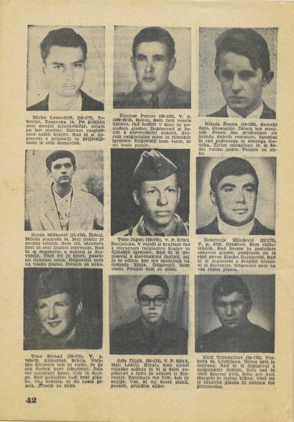 Poleg zaupnih besed, humoresk, šal, razvedrilnih tematik in križanke je bila v anteni tudi rubrika Mali oglasi. Tu so dekleta in (predvsem) fantje iskali stike oziroma dopisovalce ali prijatelje. To je bil tak starinski Facebook. Nekoč sem prebrala oglas, v katerem je fant napisal, da je že skoraj plešast, škrbast in večno neobrit; nadaljnjega besedila se ne spomnim. Ata je rekel, da bo ta dobil največ ponudb. Začudeno sem ga vprašala, zakaj. »Zato, ker je po pravici povedal!« je bil odgovor.