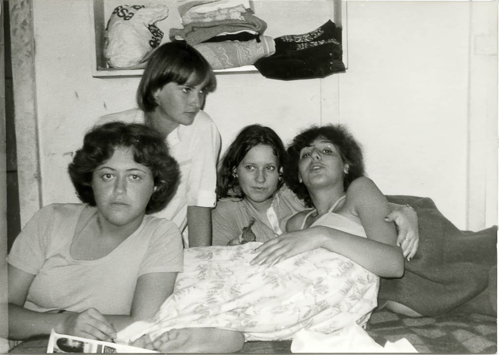 Učili so nas, da se pri naštevanju sebe postavi na zadnje mesto. Pa začnimo z desne. Prva je Snežana iz Beograda. Tam je obiskovala eno šiki-miki fakulteto, menda ekonomsko. V prostem času je bila manekenka, poleti pa strežnica na morju, da je imela zastonj dopust. Zvečer smo bili prosti. Ponavadi smo sedeli ob plesišču ali hodili na sprehod ob obali. Nekega dne smo jo prosili, naj se naliči tako, kot to delajo manekenke. Najprej je bila podlaga, pa krema in spet nekakšna podlaga, malo šmira, puder in tako naprej. Kot Indijanci pred bojnim pohodom. Po pol ure smo se naveličali in smo šli. Naslednja je Barbi z Reke. Njena mama je bila glavna kuharica v domu. Barbi je bila zelo empatična, nobene žlehnobe ni bilo v njej. Vsem in vedno je rada pomagala. Sledi moja sošolka Irma. Je tudi fejst baba, sicer ne bi bila moja prijateljica. Ker – kdo me bo pa prenašal, tečno kot sem. Na levi sem pa jas jzst jaz v vsej svoji baročni veličini. Kako je do nje prišlo, do tam še pridemo. Za našimi glavami je pa nekakšen približek omare.
