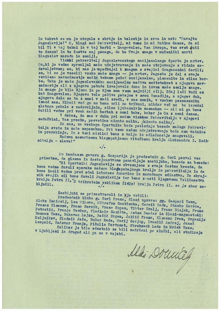 1934 Rakek – Poročilo o zaobljubi športnikov ob smrti kralja Aleksandra I.