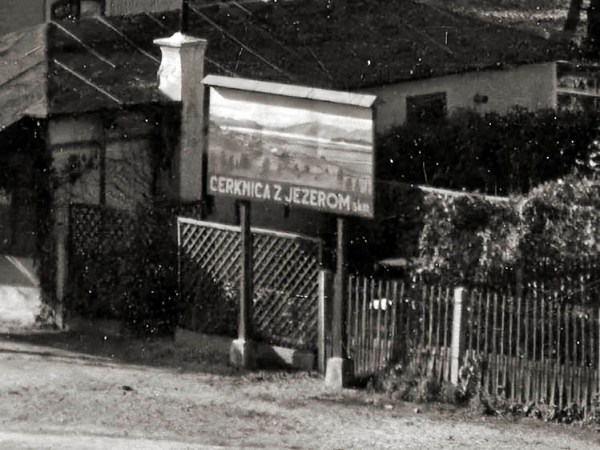 Potnike, ki so na Rakeku izstopili z vlaka, je pričakala tabla s sliko Cerkniškega jezera in napisom »Cerknica z jezerom«. Stala je poleg Kolodvorske gostilnice. Velika je 3 m x 1,5 m. Postavili so jo leta 1931.