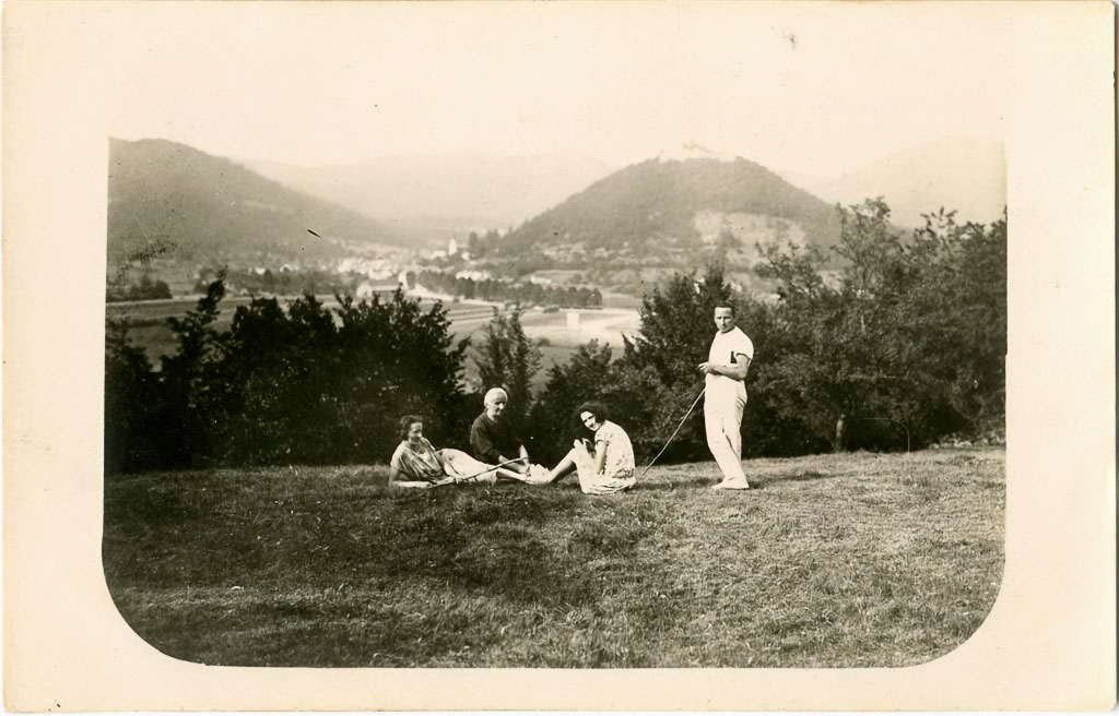 Sliko je leta 1930 posnel Alojz Tomec na severnem pobočju Ulake. Na njej je on sam in tri neznane ženske. Za današnji prispevek je pomembno predvsem ozadje: vidi se cesta proti Ložu, sam Lož s cerkvijo svetega Petra in Pusti grad nad njim, na levi Kamni hrib, v sredini slike pa pravljični lipov drevored, ki je moral ob cvetenju opojno dišati …