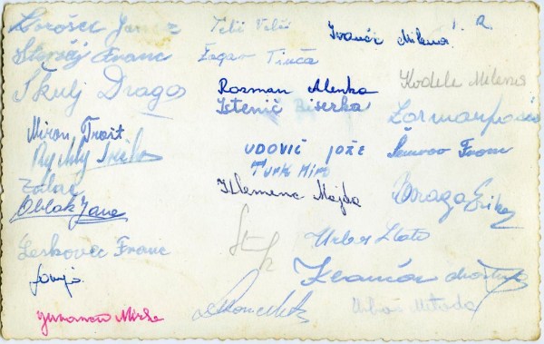Podpisi na zadnji strani: nekateri so žal nečitljivi, poleg so tudi podpisi učencev, ki jih ni na sliki.