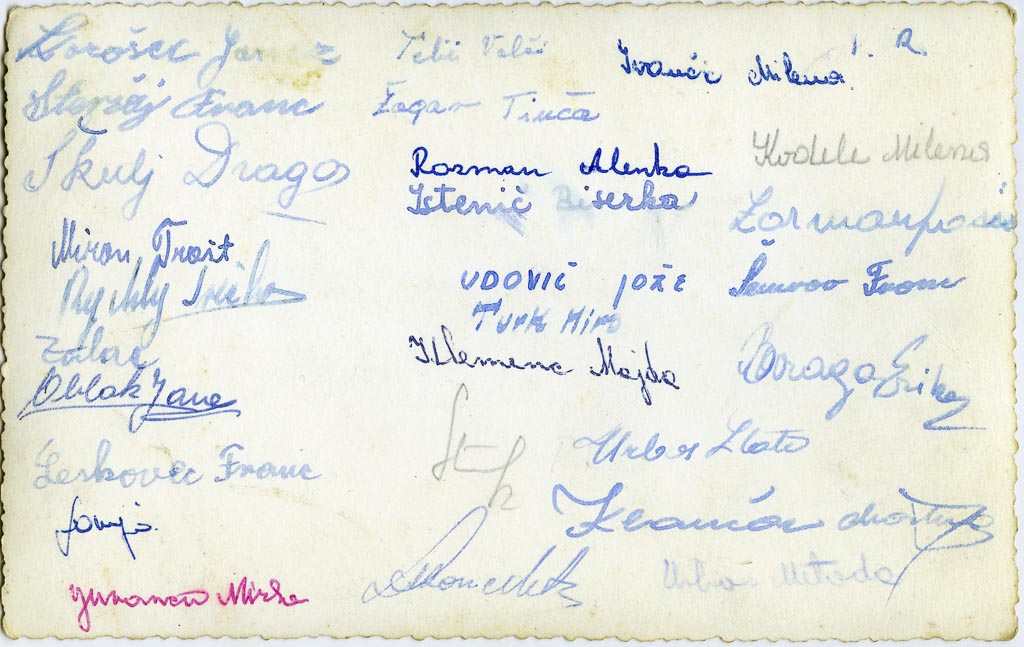 Podpisi na zadnji strani: nekateri so žal nečitljivi, poleg so tudi podpisi učencev, ki jih ni na sliki.