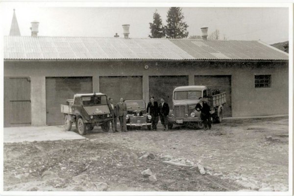 Zanimiva fotografija verjetno iz obdobja okoli leta 1952. To naj bi bil vozni park Avtošpeda. Na fotografiji Unimog, Dodge in Mercedes. Vsi lepo z osebjem postrojeni pred neznanim objektom. Lokacije kljub naporom nismo uspeli določiti. Prosim bralce Starih slik za pomoč.