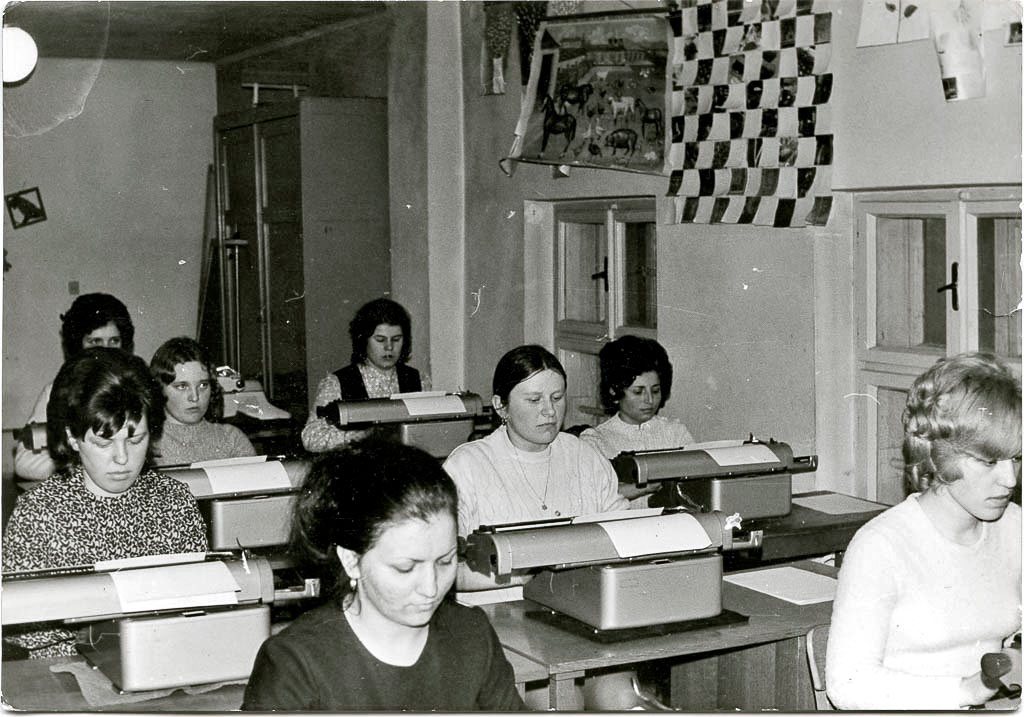 prav v tem prostoru in na istih pisalnih strojih sem tudi jaz imela predmet strojepisje. Profesorica je korakala po učilnici in nam narekovala: čaka sladka safalada. Za nepoznavalce: to besedilo se tipka z vsemi prsti na tipkah v srednji vrsti na tipkovnici 🙂