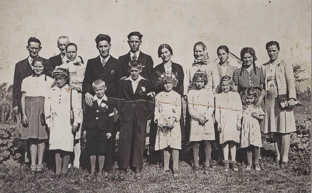 Na sliki je razširjena družina moje mame. Nastala je v Ambrusu za farovžem leta 1946 ali 1947. Mamini mlajši bratje in sestre so bili pri birmi. Na srečo je teta še živa in je prepoznala vse osebe na sliki.