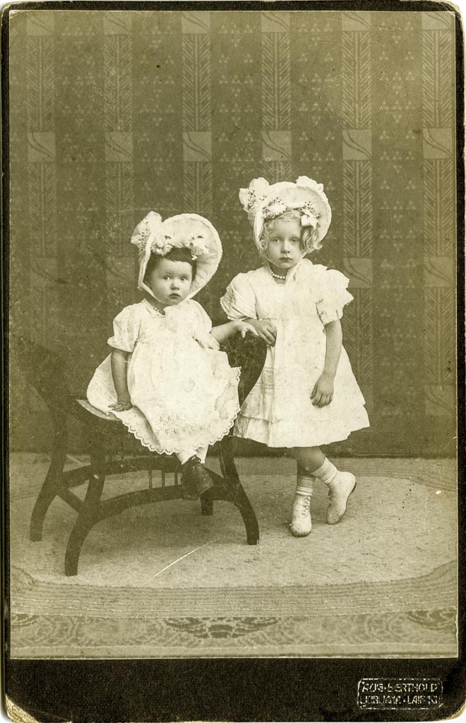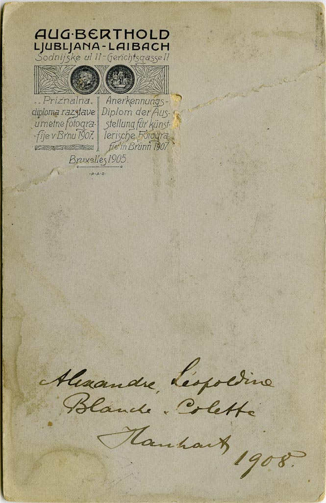Tudi to sliko je posnel Avgust Berthold. Na zadnji strani ni nič zapisanega, vendar po videzu obeh deklic lahko sklepamo, da je bila posneta prav tako leta 1908. Lepo ju je namestil v svojem ateljeju, mlajšo Colette posadil na stol, starejša Blanche pa pozira poleg s prekrižanima nožicama. Obe sta svečano oblečeni, s klobučkom na glavi.