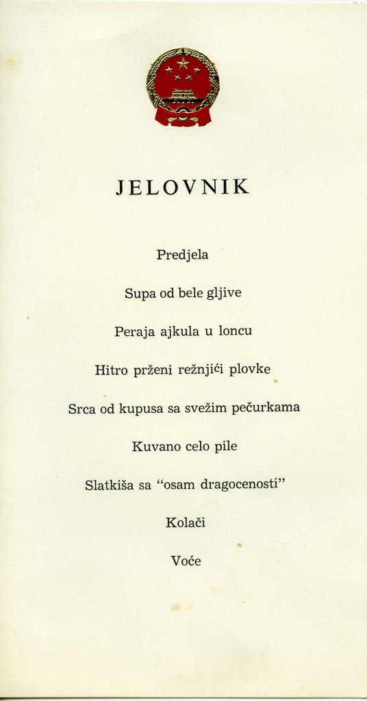 V Tonetovi zapuščini, v škatli z njegovimi protokolarnimi spomini, sem med jedilnimi listi našel mapo, ovitek z grbom DR Koreje, torej Severne Koreje, napisane pa so bile same »grabljice«. Sklepal sem, da je to jedilni list iz Koreje.