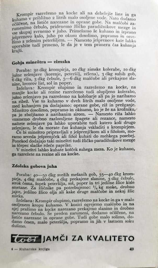Na sliki je naslovnica kuharske knjige Ivana Ivačiča. Izšla je leta 1967 pri Založbi Obzorja v Mariboru. Cena je bila 24 novih din. Povprečna mesečna plača v lesarski industriji je bila 745 novih din (745.000 starih). Knjiga je Evgenova in je precej zmatrana. Uporabljal jo je njegov oče. Evgen je ne rabi, ker ima vgrajeno samozavest serijsko in mu je kuhanje v veselje, medtem ko meni ni.