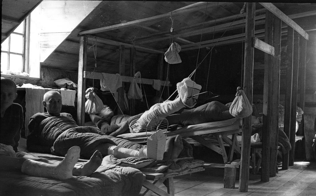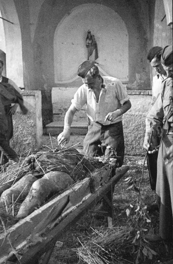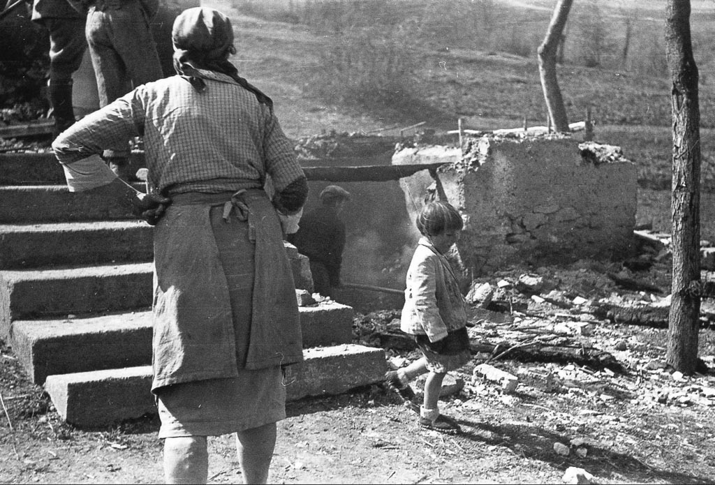 Prizor iz drame Mateja Bora Raztrganci, ki jo je uprizorilo Slovensko narodno gledališče v Črnomlju, 13. septembra 1944.