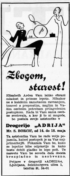 Reklamam danes rečemo oglasi, zapeljevanju morebitnih kupcev našega izdelka pa stiki z javnostmi. Med listanjem po arhiviranih časnikih sem se pogosto ustavil ob teh sestavinah časopisnih strani. Ker znajo na prav poseben način pričarati privid nekdanjega. Vse reklame v tem prispevku so iz časnika Jutro iz leta 1935, stare so 90 let.