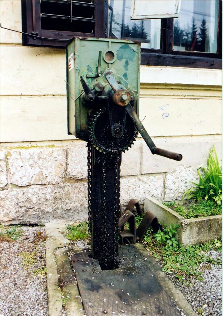 Ročni mehanizem za spuščanje in dvigovanje mehanskih zapornic je stal pred vhodom v postajno poslopje. Z zapornicami je bil povezan preko podzemnega in nadzemnega žicevoda dolžine 250 metrov. Z mehanizmom je rokoval odjavnik oz. čuvaj prehoda. Zaporni mehanizem je bil odstranjen leta 2009, ko je bil nivojski prehod zavarovan z novimi avtomatskimi polzapornicami. Od tedaj naprej vlaki preko vklopno/izklopnih kontaktov sami zapirajo/odpirajo zapornice.