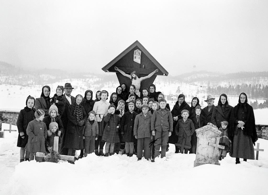 Iz snega je na sliki komaj videti tudi vsaj pet enakih lesenih križev na grobovih ubitih, nemih pričevalcev o nedavni tragediji.