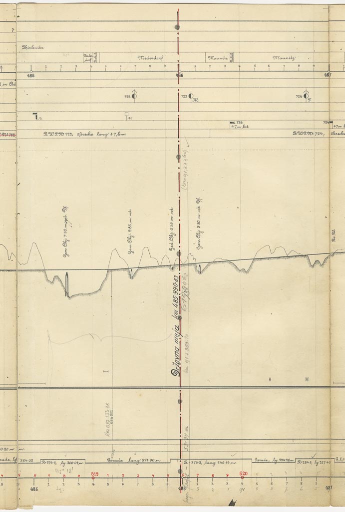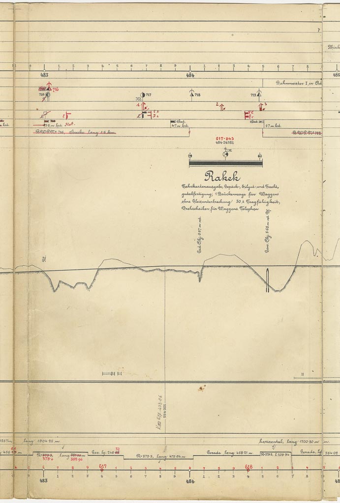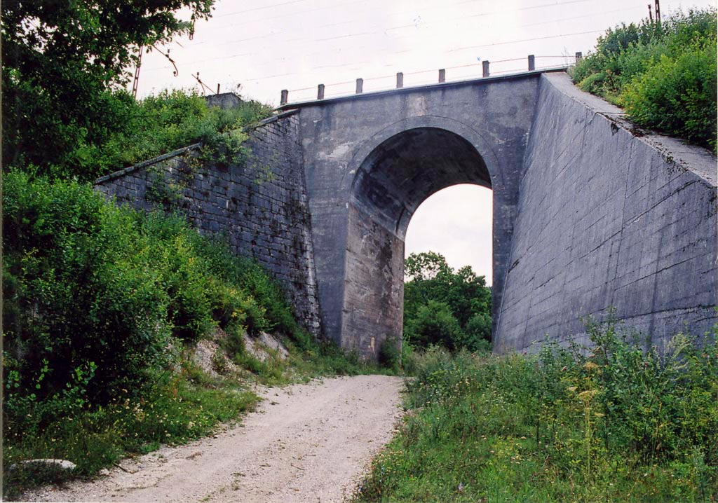 Pa še drugi del vzdolžnega profila, kjer prav tako v nasipu, samoti in pozabi stoji še drugi rakovški most v Delah (skrajno levo). Dejansko je “copy & paste” varianta prvega, le nekoliko višji je od njega. Južna železnica je gradila tipske objekte, da je s tem prihranila na času in denarju.