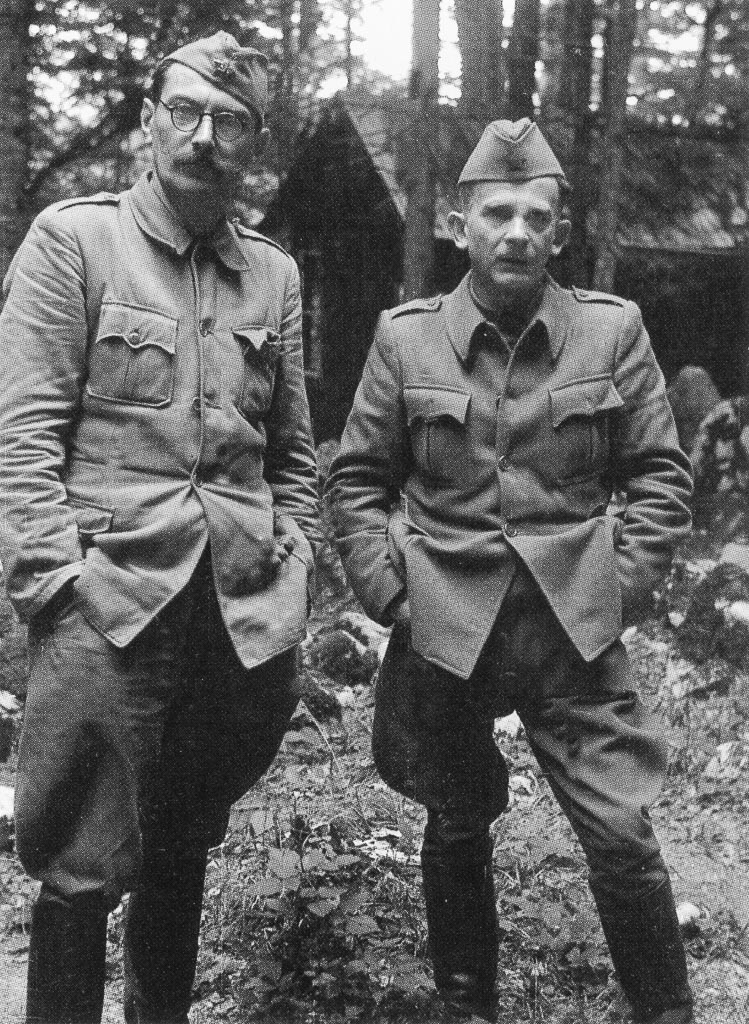 Slovenski likovni umetniki – Dore Klemenčič, Nande Vidmar, Božidar Jakac, Nikolaj Pirnat in France Mihelič ob zasedanju v Kočevju oktobra 1943.