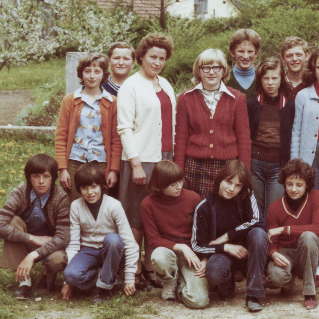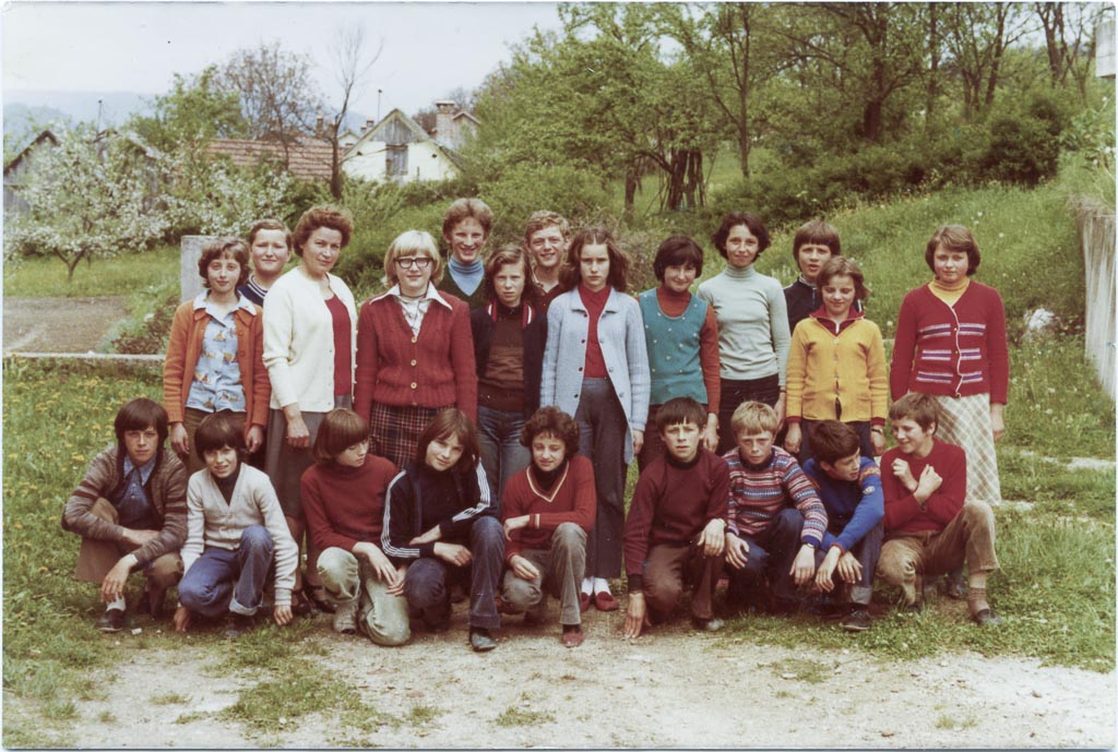 Razredničarka Slavka Gornik in njen 7. a razred osnovne šole Rakek, v šolskem letu 1978/79.