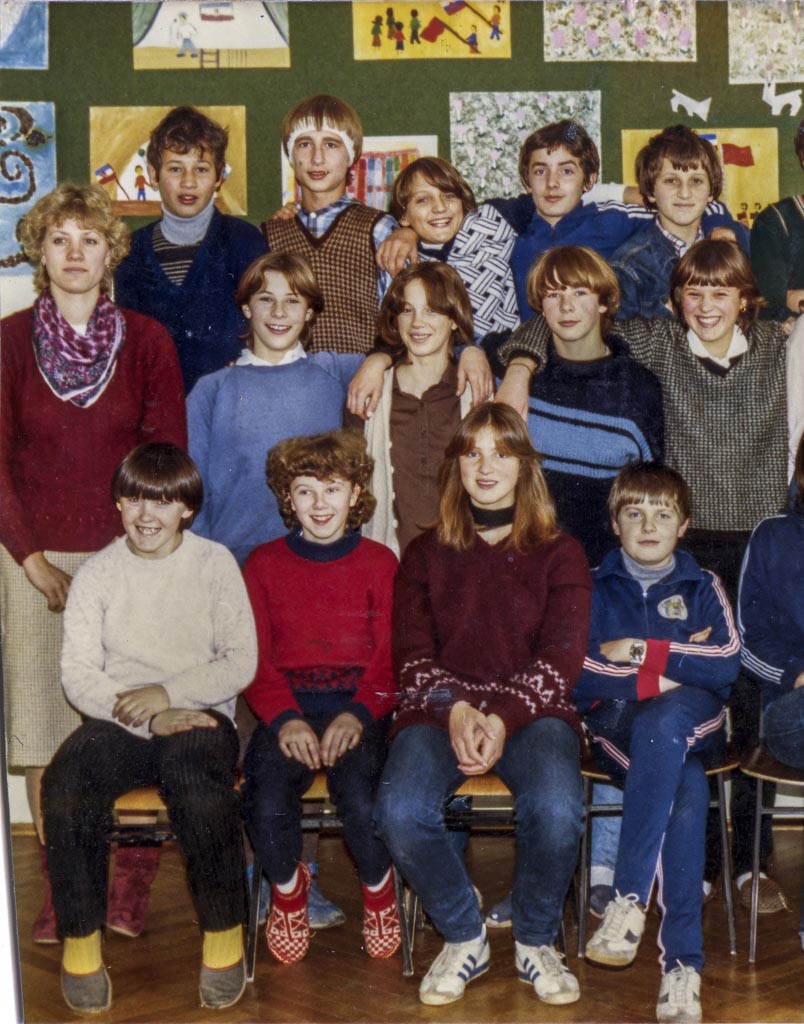V šolskem letu 1981/82 slikan 7. razred osnovne šole Rakek z razredničarko Jolando Funda in učiteljico Jasmino Čelan.