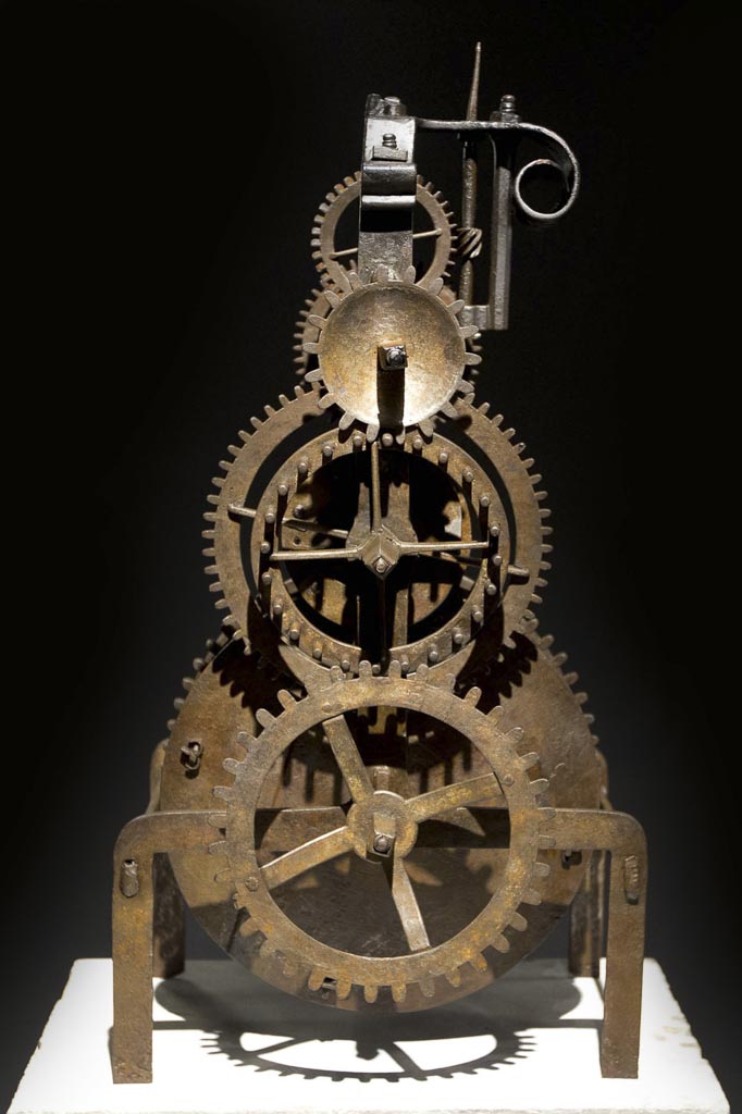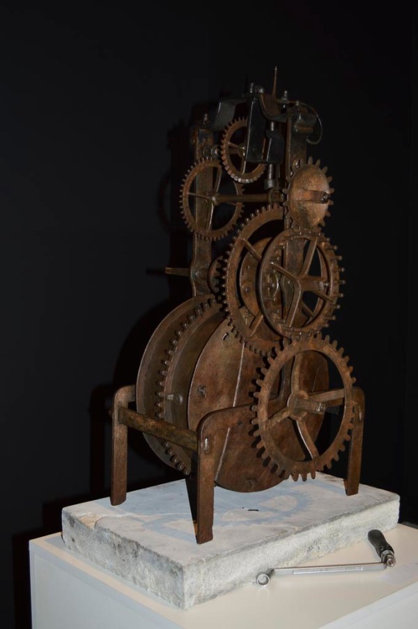 Zaščiten urni mehanizem mehaničnega ražnja na razstavi v Notranjskem muzeju Postojna, 2013. Foto: Valentin Benedik.