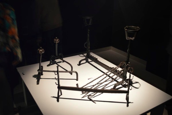 Zaščiteni dodatki urnega mehanizma mehaničnega ražnja na razstavi v Notranjskem muzeju Postojna, 2013. Foto: Valentin Benedik.