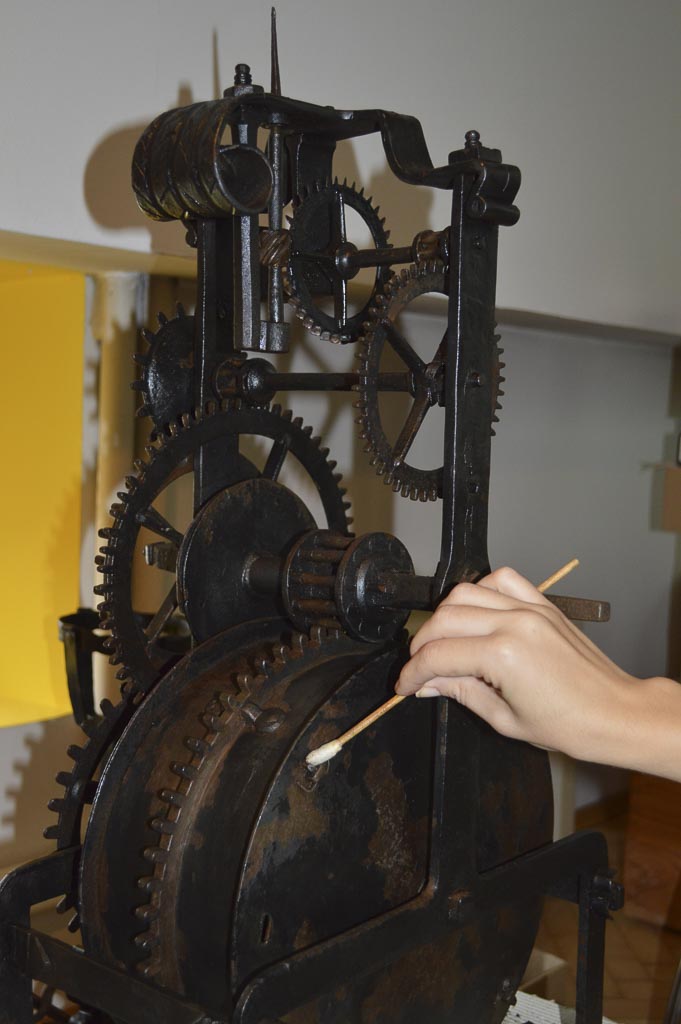 Urni mehanizem mehaničnega ražnja pred zaščito, Restavratorski center, 2013. Foto: Valentin Benedik.