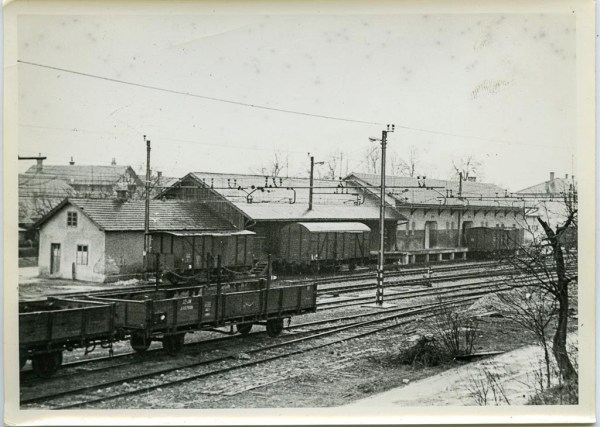 Tovorna skladišča na postaji Rakek leta 1966. Najstarejše na desni strani je bilo zgrajeno takrat kot Južna državna železnica leta 1856. Sredinsko leseno skladišče je bilo zelo verjetno zgrajeno na prelomu stoletja. V najmanjšem zidanem objektu je bilo skladišče in mizarska delavnica, zgrajen pa je bil po 1. svetovni vojni.